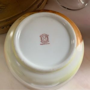 This beautiful vintage cranberry bowl features the iconic Tree in the Meadow pattern by Noritake Morimura, originally introduced around 1918. A stunning example of early Noritake porcelain, it showcases delicate hand-painted landscape scenes with timeless charm.