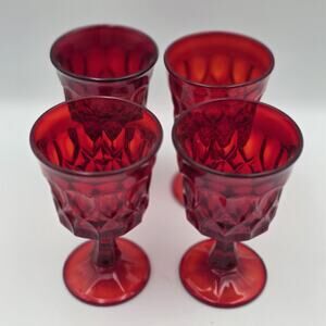 Vintage Noritake Perspective Set of 4 Ruby Red Glass Water Goblets 5" Tall
