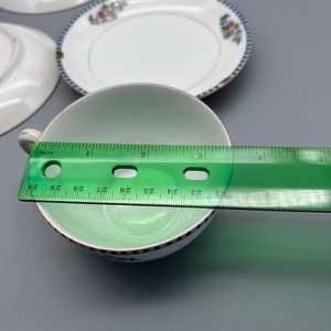 Vintage Noritake “Sheridan” Flat Cup & Saucer Sets 4. These 4 cups and 4 saucers are in good preowned condition with no chips or cracks, there is some wear from age but very minimal! See photos! The design features blue and black art deco style with multicolored florals. Each cup measures 2” tall and the plates diameter measures 5 1/2”. Perfect replacement pieces or additions to any dining decor!