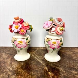 Vintage “Noritake” Upcycled Button Bouquets Shakers