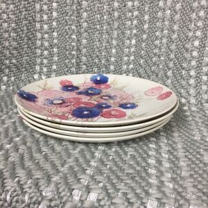 Set of 4 beautiful vintage floral plates from Noritake featuring a set of watercolor-eque floral patterns in pink, white, purple, and light red. These are beautiful and in perfect condition. These would be a perfect addition for a boho chic / jungalow style home!