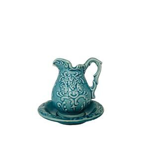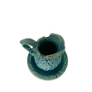 Vintage Norleans Blue Aqua Mini Pitcher Bowl Grape Pattern Japan Imperfection