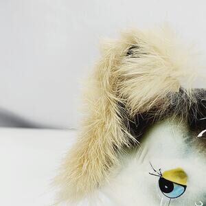 Vintage Norleans Japan Brown & White Ceramic Kitty with fluffy Ears & Tail