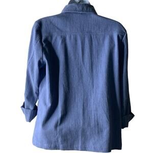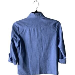 Vintage Norm Thompson Denim Shirt Women's Size S/P 3/4 Sleeves Button Up Beads Pocket Blue