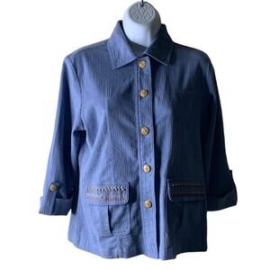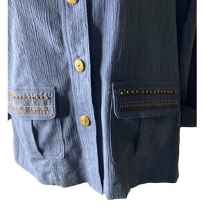 Vintage Norm Thompson Denim Shirt Women Size S/P 3/4 Sleeves Beads Pocket