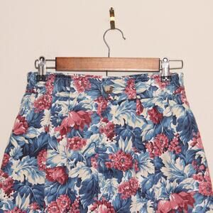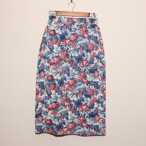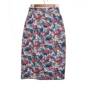 Vintage Norm Thompson Floral Denim Pencil Skirt Size 10 Midi/Maxi Made in USA