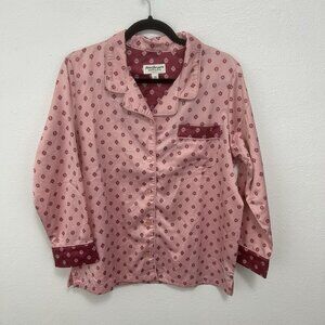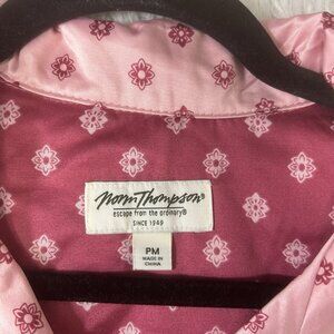 Vintage Norm Thompson Pink 2 Piece Pajama Set Pink Floral Satiny Size MP Petite