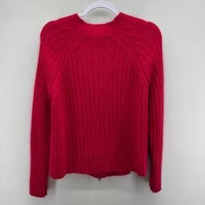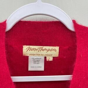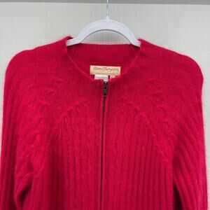 Vintage Norm Thompson Red Soft Fuzzy Lambswool Rabbit Hair Zip Front Sweater