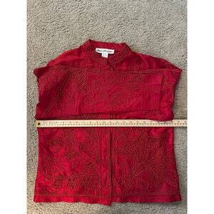 Vintage Norm Thompson Ruby Red Silk Embroidered Holiday Festive Jacket Size M