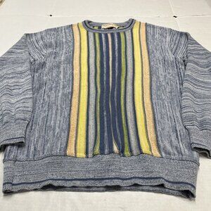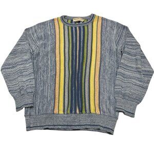 Vintage Norm Thompson Sweater Men M Blue Pullover Textured 3D Knit Cosby Grandpa