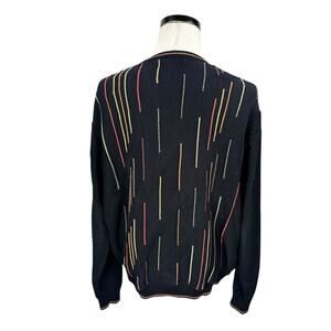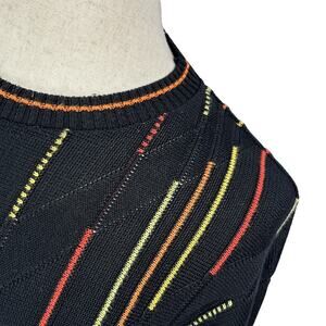 Vintage Norm Thompson Sweater Men’s XL Black Striped Knit Geometric Biggie Cosby