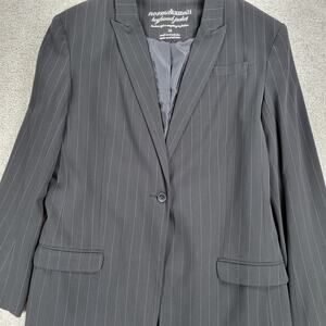 Vintage Norma Kamali Boyfriend Suit Jacket Womens 16 Black Gray Pin Striped