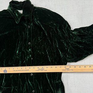 Vintage Norma Kamali Button Down Shirt Green Velvet Long Sleeves Size S Small
