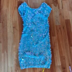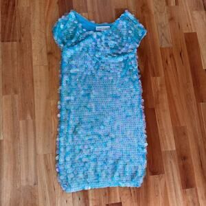 Vintage Norma Kamali dress sequined sequin teal Turquoise mermaid sz L paillete
