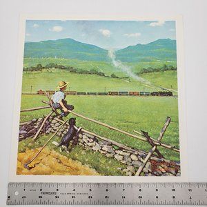 Vintage Norman Rockwell Art Print Kids 11 Inches Square Boy Watching Train NEW