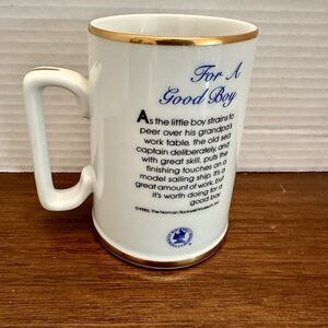 Vintage Norman Rockwell Coffee Mug " For a Good Boy" 1982 Gold Trim Ship Sea No chips or cracks