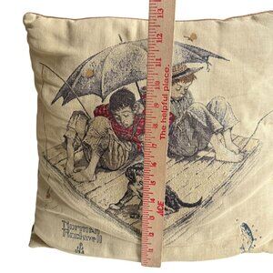 Vintage Norman Rockwell Pillow 2 Boys 1 Dog Fishing Fishermans Paradise Beige
