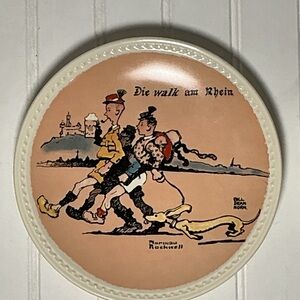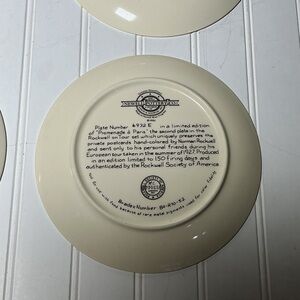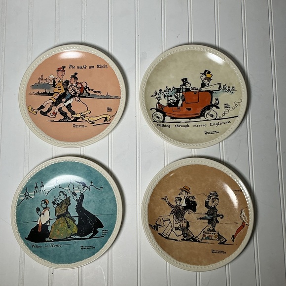 This is a set of 4 Vintage Norman Rockwell- Rockwell on Tour Plates. Promenade a Paris (plate # 6972E), When in Rome (plate #15260C), walking through merrie Englande (plate #15958B), and Die walk am Rhein (plate # 9384D).