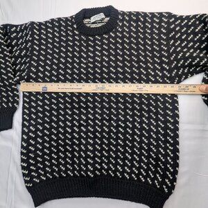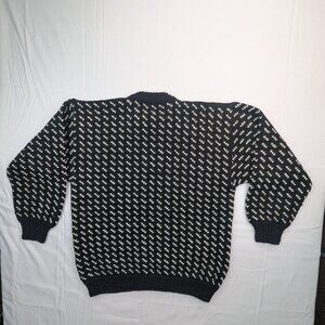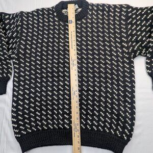 Vintage Norsk Håndstrikk Norwegian Wool Sweater Hand Knit Size XL/ 2XL White Blk