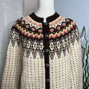 Vintage Norsk Husflid Hand Knit Wool Cardigan Sweater Nordic Button Size Medium