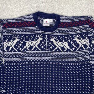 Vintage Norsport Knitted Reindeer Winter Sweater: Size Large