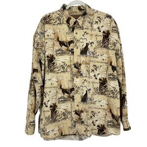 Vintage North River Mens XL Button Up Shirt Novelty Hunting Dog Print Cotton