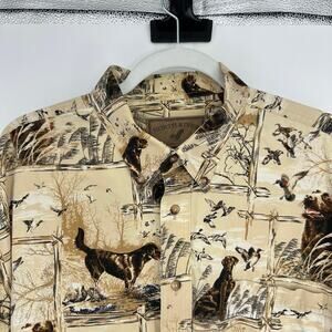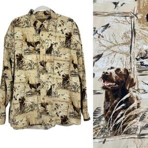 Vintage North River Mens XL Button Up Shirt Novelty Hunting Dog Print