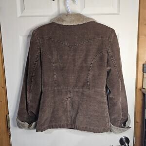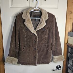 Vintage Northcrest Women's Dark Brown Corduroy Jacket with Tan Fur Collar Sz S