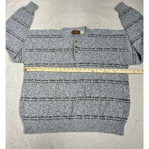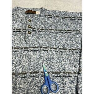 Vintage Northern Explorers Textured Knit Blue Henley Sweater Men's Size XL