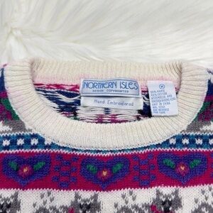 Vintage Northern Isles Hand Embroidered Cat Sweater