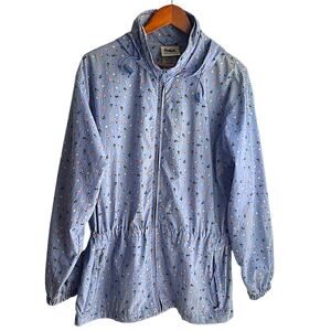 Vintage Northern Reflections Size Med Blue Floral Rain Jacket Hood Windbreaker