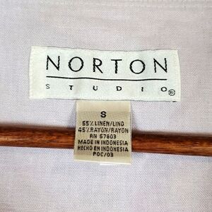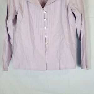 Norton Studio cottagecore, lagenlook linen rayon blend button down top in pastel lilac purple. Mother of pearl buttons. Eyelet detail by buttons. Excellent condition, one small mark on interior neckline as shown in last picture. Size small.