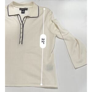 Vintage Norton McNaughton Henley Sweater Women's Med Cream Blue Trim Collar