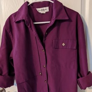 Vintage Norton McNaughton Purple Cuffed Sleeves Button Up Shirt Size 10