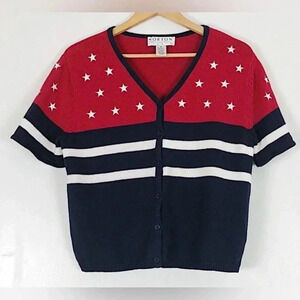 Vintage Norton Studio American Flag Knit Sweater Cardigan Short Sleeves …