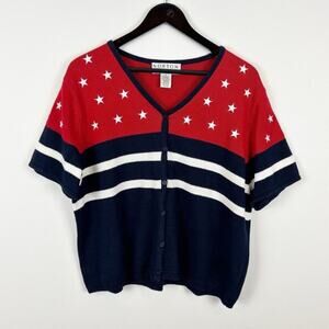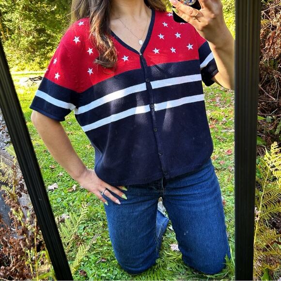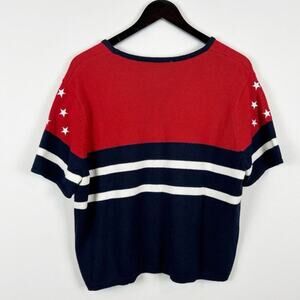 Vintage Norton Studio American Flag Patriotic Printed Short Sleeve Sweater Large