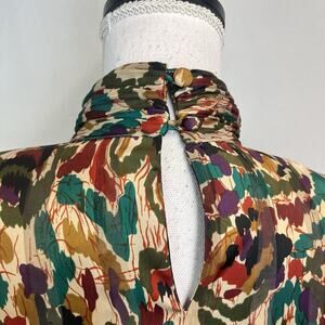 Vintage Notations Blouse sz 10 Orange Green Purple Career Shoulder Pads 90's Y2K