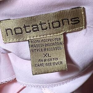 Stunning vintage Notations sleeveless polyester blouse in gorgeous dusty pink. This elegant tank top features premium polyester fabric with a sophisticated drape perfect for office wear or special occasions. The classic round neckline and refined cut create a timeless silhouette that pairs beautifully with blazers, cardigans, or worn solo. Delicate button closure at back neckline adds feminine detail. This versatile piece transitions seamlessly from professional meetings to dinner dates. Easy care polyester maintains its shape and color beautifully wash after wash. Excellent vintage condition with no visible flaws. Size XL offers comfortable fit with beautiful draping. A rare find from this respected brand - perfect for collectors of vintage fashion or anyone seeking elevated wardrobe essentials. Ready to ship immediately.