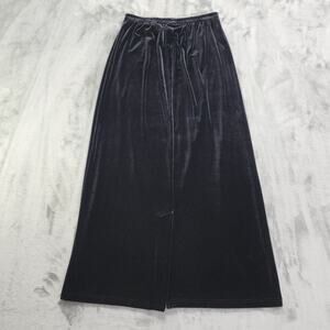 Vintage Notations Skirt Size PM Black Velvet Maxi Pull On Back Slit Stretch