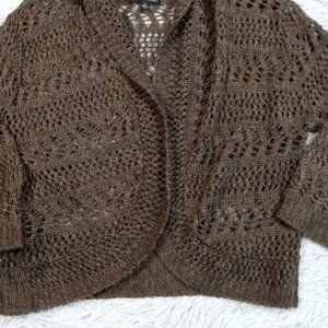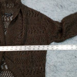 Vintage Notations Womens Sweater Cardigan Brown L Open Front Short Crotchet