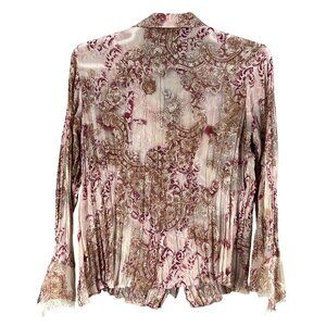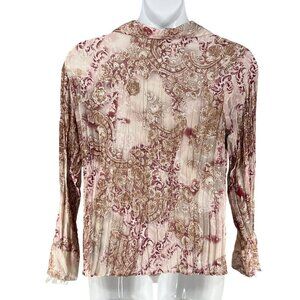 Vintage Notations Womens XL Sheer Chiffon Ruffled Crinkle Boho Button Up Blouse