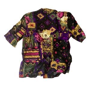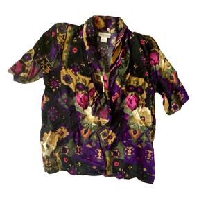 Vintage collared blouse with multicolored floral pattern by Novelle in good preowned condition. No flaws.