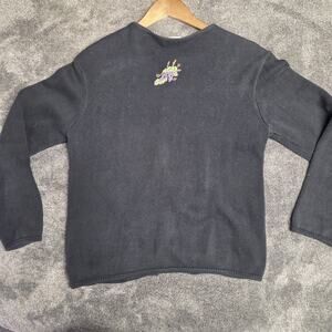 Vintage Novelty Cardigan Sweater Wine Grapes Grapevine Black Size Large
