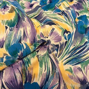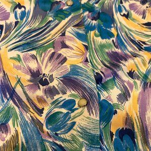 Vintage Novelty Floral Print Pearl Snap Button Down Dress Nightgown M