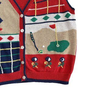 Vintage Novelty Golf Embroidered Sweater Vest Large Grannycore Kitsch Gift