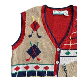 Vintage Novelty Golf Print Embroidered Sweater Vest