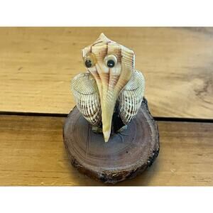 Vintage Novelty Knick-Knack. Bird made out of sea shells on wood. Beach Nautical