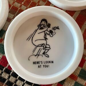 EUC. Plastic Round Novelty Party Coasters. Stacking. Approximately 3" in diameter. No brand markings.