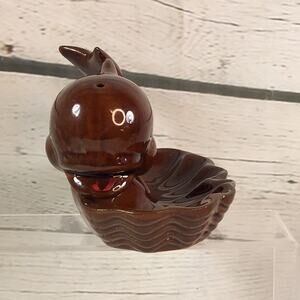 Vintage Novelty Whale Ashtray with Smoking Blowhole. Could be used as an incense burner, a kitchen scrubby holder, a ring dish, or a soap dish (for a small bar). This would make a great gift for a whale lover! It's so cute! The original idea is that you place a smoking object into the slot beneath the whale and after a minute or so smoke comes out of the blowhole. I haven't tried it so don't know if that happens. The dish doesn't smell of any kind of smoke so I don't know if it's ever been used like that. Measures approximately 3" tall x 5" wide x 3" deep. No chips, cracks, or crazing. In excellent condition. From a non-smoking home. No markings or branding.