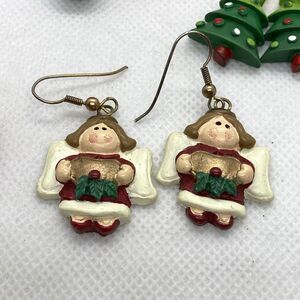 Vintage - Now Lot 4 Pairs Pierced Christmas Earrings Tree Bell Bow Angel Bulb